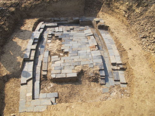 日前,方巷镇钱冲村郭庄组近日发现一座古代墓葬,出土石质墓志铭、开元通宝、白陶罐、四足铜香炉、3个酱釉罐等文物。根据墓制、出土文物等,专家推测应为一座唐代墓葬。 方巷镇钱冲村郭庄组在进行土地增减挂钩项目时,挖土机挖出了一座古代墓葬,出土一方墓志。随后,村民立刻报警处理,扬州考古研究所专家对墓葬进行了抢救性发掘。 墓葬为砖室墓,呈腰鼓型,长4米,宽不足3米,结构基本完整,墓室、棺床都保存较好。由于早期被盗,仅出土了石质墓志铭、开元通宝、白陶罐、四足铜香炉、3个酱釉罐等文物。由于年代久远,墓志已经完全风化,无法辨别上面的字迹。根据墓葬的特点,专家推测为唐代墓葬,墓主为村中较为富有的人家。