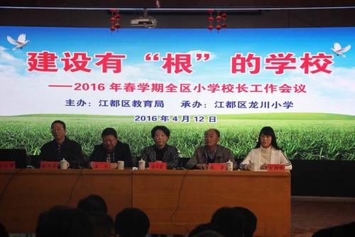为全面贯彻教育行政工作会议精神,坚持以文化为灵魂统领学校全面工作,12日下午,2016年春学期全区小学校长工作会议在龙川小学召开,区教育局领导嵇兴莲、赵建昌、戴勇、朱群峰、张斌,仙女镇教办领导王文及全区小学校长参加会议。在观摩龙川小学学校文化特质建设成果展示、听取该校潘湘云校长的经验介绍后,初教科赵科长布置了全年工作。最后,嵇局长就学校核心文化特质建设提出了明确要求:要科学定位、集体认同,以秀外慧中为目标,注重行为体现,促进全区小学教育更加规范、更高质量、更具特色。