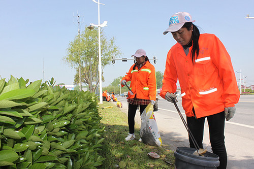 在S237宝应临城段12公里的公路两侧,经常会看到一群身着橘红色衣服的人,一只手拎桶,一只手用长铁叉子从绿化带里拣拾各色漂浮物,那是宝应公路人响应“人人参与建设美好家园”的实际行动。他们结合日常工作,每天都会抽出一些时间拣拾漂浮在公路边绿化带里的塑料袋,清除零星垃圾,清扫洒落在路边的砂土,让优美的公路环境成为文明城市的一道风景。