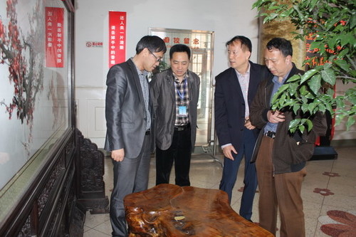 在学校行政楼一楼大厅举行了简短捐赠仪式,蒋成玉校友亲自把一件金丝楠木根雕和一件砗榘(世界上报道的只有6种,都生活在热带海域的珊瑚礁环境中。砗磲是双壳类中最大的种类,砗磲的壳外面通常呈白色或浅黄色,里面白色,外套膜缘呈黄、绿、青、紫等色彩,十分漂亮,是不可多得的装饰品。)交给了公道中学,沈文涛校长、汤恒锦副校长与蒋成玉校友亲切握手,以示两件物品的成功交接。