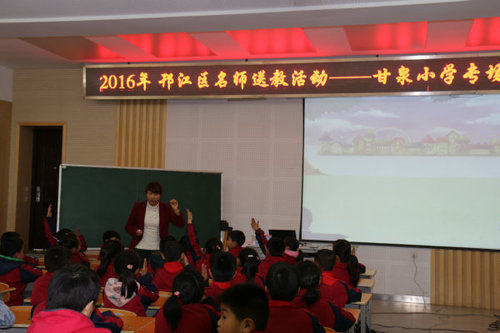 4月27日下午,名师送教活动走进甘泉小学。甘泉小学全体语数英教师以及北片校际联盟的教师代表参加了此次的观摩活动。