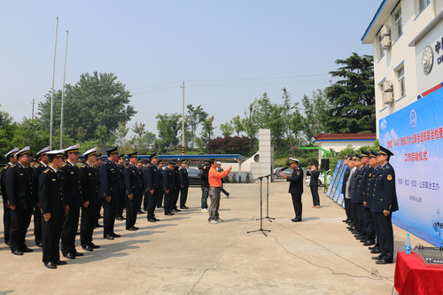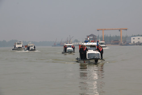 4月29日上午10时,扬州市江都区“4+N”跨部门水上联合巡航启动仪式在邵伯海事所举行。 江都区地方海事处、江都区港口管理局、京杭运河江苏省邵伯航道管理站、江都区航道管理站、江苏省邵伯船闸管理所、盐邵船闸管理所、芒稻船闸管理所、樊川船闸管理所、江都区公安局水上警察大队共9家单位出席启动仪式。来自9家单位50名执法人员列队组成方正,执法代表作表态发言。10分钟的启动仪式后,各单位派员编队,出动5艘巡逻艇,在京杭运河邵伯段水域进行了2016年首次联合巡航,拉开了构建江都水上大交通管理格局的序幕。