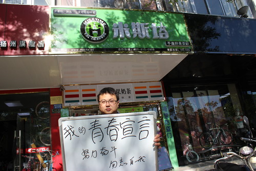 店、旅馆等各行各业的年轻人写下青春宣言,“希望青春永远留存”、“努力奋斗,勿忘自我”、“青春万岁”,大家热情高涨,对自己青春都有着别样的宣言。