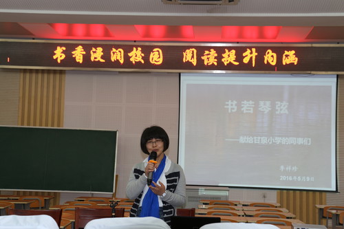 5月9日,甘泉小学多功能教室济济一堂,在这细雨连绵的日子里,美琪学校的季祥珍老师用她悦读的智慧,给甘泉小学的老师们带来了一缕温暖的阳光。