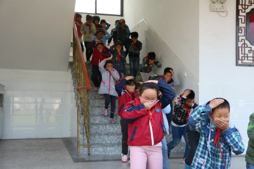 上午9:20,随着警报声的响起,各班级按照《甘泉小学防震疏散演练方案》,在班主任、配班老师的引导下,只用了2分09秒,就快速有序地全部撤离到了操场上。活动后,刘庆昌校长结合疏散演练的成功进行,倡议全体师生牢记安全,共创平安校园。并组织全体中层以上负责人,分区域进行了校级安全大检查,重点排查了校园内各块区域及各项设施的安全隐患,深入细致地查看了门卫登记, 食堂的环境卫生、食品的加工流程及工作人员的操作情况等。