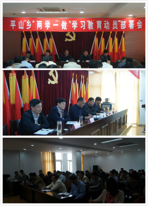 景区“两学一做”学习教育工作动员会后,平山乡第一时间抓部署、全动员、谋落实,5月13日下午,组织召开了全乡“两学一做”学习教育动员部署会。会上,乡党委书记王斌同志作了动员部署讲话,同时,槐子村党总支和平山卫生服务中心党支部代表基层党组织就如何开展好“两学一做”学习教育活动作了表态发言。乡党委副书记、乡长马广跃主持会议,全乡领导成员、机关中层部门负责人、各基层党组织书记及党务工作者共60余人参加了会议。