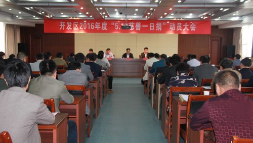 5月13日下午,开发区召开“5.19慈善一日捐”动员会,全区机关、事业单位、各村(社区)、基层站所、企业相关负责人参加会议。区党工委副书记、管委会主任赵广华及区领导班子成员出席会议。