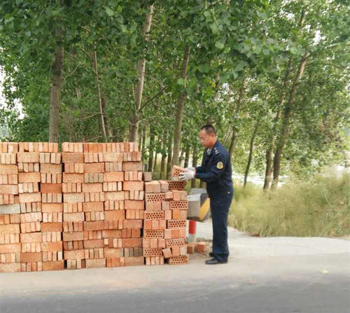 5月18日,高邮市公路路政大队巡查332省道时发现,116k+130m公路下行线路肩堆放了一大堆砖头,有500多块,且占据部分慢车道,严重影响公路安畅通行。路政人员立即下车,进行现场勘验,走访多人,有人说是附近的居民建房卸下的,有人说是附近企业临时堆在这里的,始终无法确定当事人。路政人员认为,查找当事人固然重要,保障道路通行安全更重要。在一时无法找到当事人的情况下,3名路政人员当机立断,立即搬移道路堆积物,他们随即在现场放置警示标志,并通知该标段养护人员前来协助。经过路政人员和养护工近1个小时的紧张工作,500多块砖头全部清理出公路。