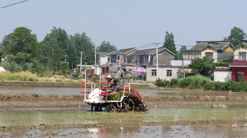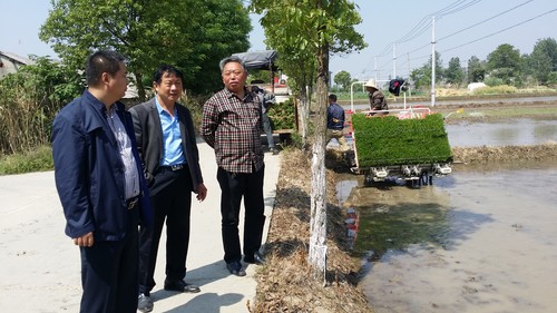 2016年5月19日下午3点在俞桥村委会举办了“农艺、农机、农产品质量安全”培训班。培训共四项议程:1、参观学习机插秧育秧现场;2、观摩学习插秧操作示范流程;3、观摩学习现代植保机械操作示范流程;4、相关技术讲座。