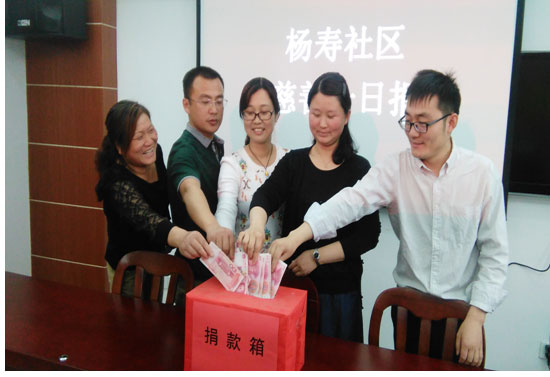 为继续弘扬中华民族乐善好施、扶贫济困的传统美德,进一步完善和健全社会保障体系,加快构建和谐社会进程,5月19日上午,杨寿社区开展了“慈善一日捐”活动。活动中,社区工作人员带头踊跃捐款,号召社区居民和辖区单位、职工也积极参与,帮助困难人群,为慈善事业尽一份心力。社区工作人员工资虽然不高,但大家觉得为慈善捐赠不分多少,善举不分先后,用自己的爱心和行动为需要帮助的人提供力所能及的服务。辖区三家爱心企业(昀辰塑业、顶呱呱木业、神厨食品)也积极响应杨寿镇慈善分会的号召,主动参与到“慈善一日捐”活动中来,三家企业共募集善款1500元整,以实际行动诠释了无私奉献、助人为乐的内涵。爱心无止境、捐助见真情,“慈善一日捐”不仅是一项慈善活动,也是一项民心工程,希望通过此次活动,让更多的居民积极行动起来,伸出友爱和援助之手,为和谐社会建设作出积极贡献。杨寿社区也欢迎更多居民加入到“慈善一日捐”的活动中来,为困难人群奉献自己的爱心。