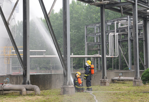 5月26日上午,仪征市人防办联合扬州市化工园区消防队开展2016年度重要经济目标防护演练。