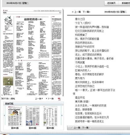 近日,扬烟作家卞云飞同志的文学作品在《扬子晚报》发表。 据悉,我省发行量第一的《扬子晚报》近期开辟了“诗风”周刊专栏,并向全省,乃至全国范围进行公开征稿。市局施桥中队卞云飞同志诗歌作品《春分之日》在数千来稿中脱颖而出,被该刊选中,刊登于2016年5月17日的B8版“诗风”栏目。在全省和扬州文学界引起广泛影响。 卞云飞同志系扬烟专卖系统一名普通的市场专管员,该同志在工作之余主动加强文学修养,积极进行文学创作,为打造学习型扬烟和树立良好的社会形象做出了积极贡献。