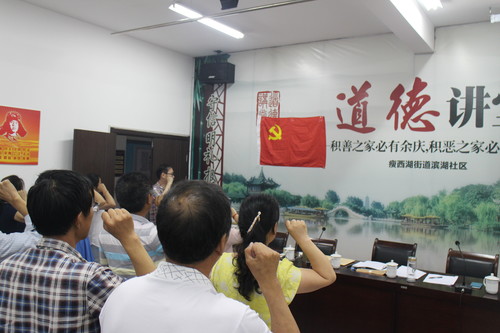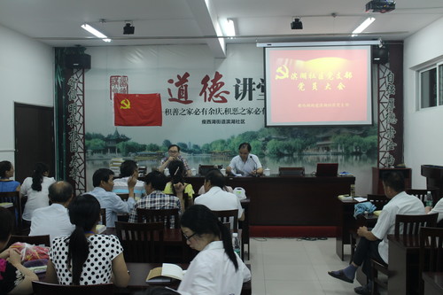 6月24日下午两点半,滨湖社区党支部召开了党员大会。大会共分两项议程:第一项,关于接受李美燕同志为预备党员;第二项,由扬州市委党校王淦教授做“两学一做”专题讲座。