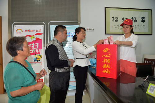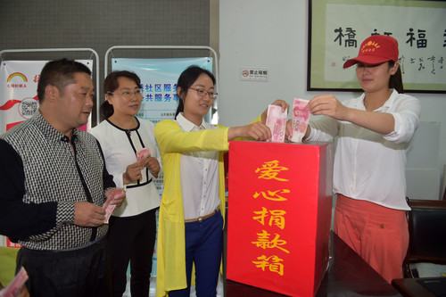 灾害无情人有情,6月27日,虹桥社区党总支开展为江苏盐城市受突发龙卷风冰雹严重灾害地区群众的捐款活动,为帮助阜宁和射阳县受灾地区人民重建家园。社区党员干部及工作人员、居民等举行捐款活动,两委班子成员带头捐款,其他工作人员纷纷献出自己的爱心。有一位家庭并不宽裕的七彩虹志愿者李茂兰,冒着大雨赶到社区,送来了500元善款。大家纷纷表示要与灾区人民一路同行,奉献出我们的一份爱心,点燃一份希望!
