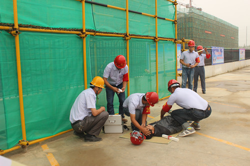现场,与会人员一起观摩了建筑施工应急救援预案演练,内容是建筑工人高空作业不慎坠落和意外触电2起事故的应急处置,模拟了险情的发生、迅速报告、开展救援、排除隐患和清理现场等过程。整个演练组织严密,分工明确,配合默契,行动迅速,取得圆满成功,达到了预期的目的。