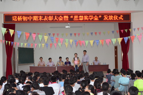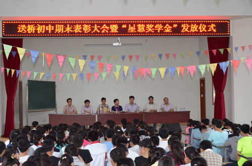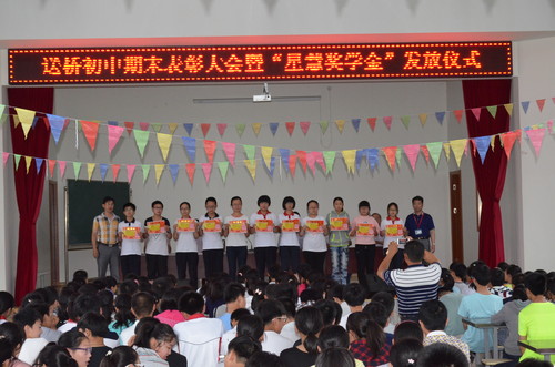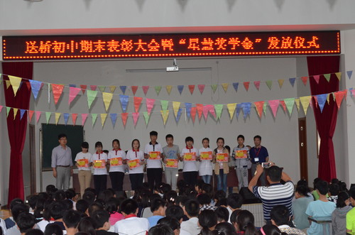 2010年7月3日上午,送桥初中举行2015~2016年度第二学期七、八年级期末总结表彰暨星慧奖学金发放仪式。该奖学金由扬州星慧照明工程集团胡广太董事长提供,每名期末考试一等奖学生200元。
