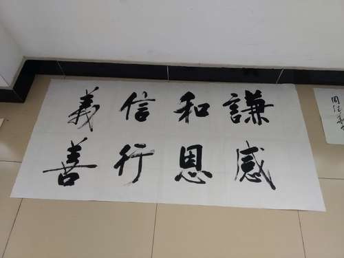 现场,老师和孩子们共同题写了“谦和信义 感恩行善”“百善孝为先”等作品。