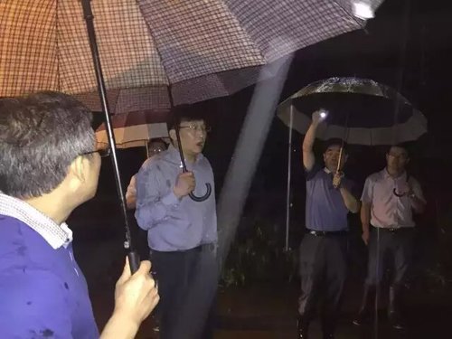 7月4日晚,副市长、区党工委书记丁一到施桥镇汤巷闸等重点闸口视察防汛工作专题部署