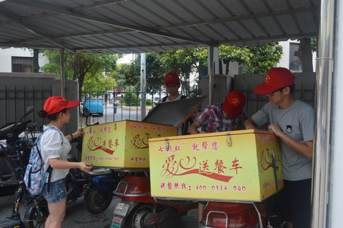 志愿服务过程中,虽然大家都感觉到很热很累,但是一想到老人们可以吃到放心餐并且可以在干净的环境里活动,大家都带着微笑,彼此鼓励着。我们也希望社会上能有更多的志愿者加入到守护空巢老人的活动中,关爱老人,让他们不再孤单,不在感觉到无人问津。