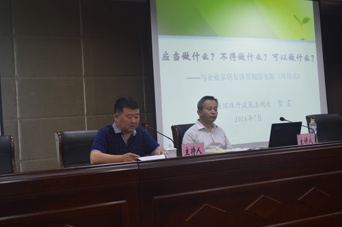 为推进仪征生态文明建设步伐,增强企业法律意识和环保观念,提高环保依法管理的能力,改善城乡环境质量。2016年7月15日,仪征市环保局邀请省环保厅政策法规处副处长贺震作“企业的环境责任与权利义务”专题讲座,各园区职能部门负责人,各镇、办事处环保助理,重点企业环保负责人,环保局全体人员参与培训。 贺处长用“十个责任”、“七个不得”、“八个可以”高度概括了新环保法赋予企业的责任、权利和义务,详细解读企业信用评价的指标体系以及建设过程,旁征博引国内外的典型案例,深入浅出的讲述企业信用重要意义。贺处长融学术性、实用性、指导性于一体的讲座,使参会人员深受教育和启发的同时,明确了自身的主体责任和对区域环境质量负责的义务,为进一步做好环保工作提供了法律指导。(朱萍)