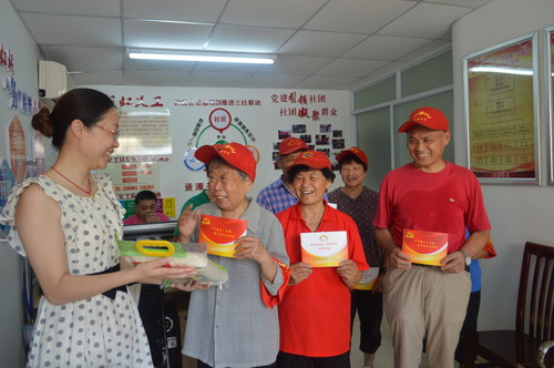 7月20日上午,虹桥社区“七彩虹桥”社团党建工作室内喜气洋洋,一批头戴小红帽的回族志愿者从社区工作人员手中接过洗漱用品、大米、食用油等奖品。这是虹桥社区去年底探索志愿者管理积分模式以来首次举行积分兑换物质奖励表彰。
