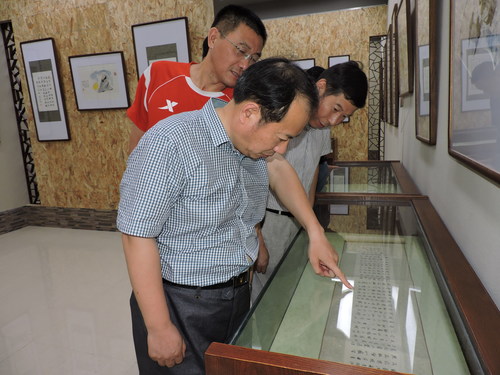 仪征市市场监督管理局干部职工热烈讨论展出的廉政书法作品