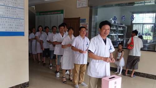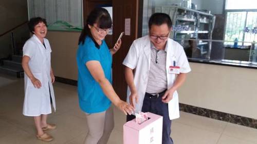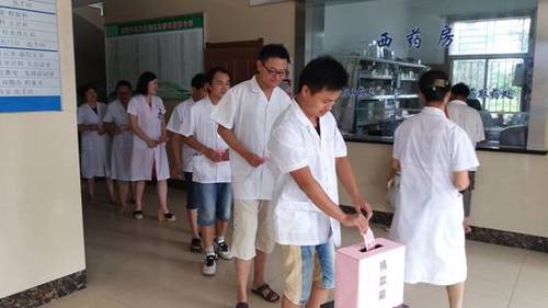 真武中心卫生院病退职工陆飞同志,原是一名优秀的护理工作者,二十多年前因患糖尿病合并尿毒症、现双目失明、每周血透三次,其丈夫患乙肝若干年且下岗,女儿身体也不好,今年高中毕业,目前以359分的成绩被武汉科技大学录取。此家庭因病致贫、十分困难。 俗话说一方有难,万方支援,本院职工得知此消息,一致表示要尽自己的微簿之力, 大家纷纷伸出援助之手,为贫困职工献爱心,帮助这个困难家庭度难关。