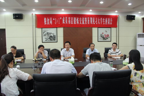 今年,团市委牵头组织的“暑期大学生见习活动”。高邮市粮食局团委组织暑期见习大学生和机关青年开展面对面交流座谈活动。副局长盛福朝,局关工委班子成员、局机关相关科室负责同志和见习大学生、“3+1”工程培养对象等参加了会议。