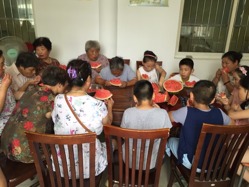 7日是二十四节气中的立秋,为了强化民族转强,虹桥社区组织回族老少居民欢聚一堂,一起“啃秋”。立秋当天啃西瓜意味着将“秋老虎”吞进肚中,早点送走“夏火”。