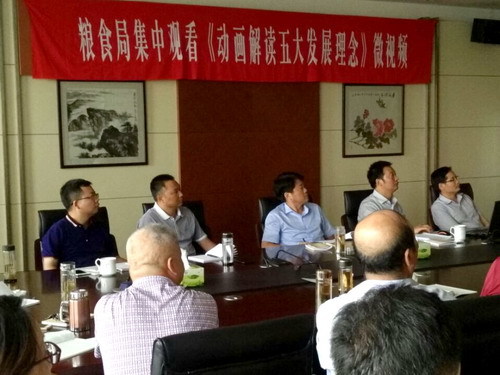 会议还集中观看了十三五“五大发展”理念视频,入脑入心讲解,让大家深刻认识到五大发展理念的重要意义,在今后的工作中,要坚持以五大发展理念为指引,以适应、把握和引领新常态作为总要求,结合粮食系统实际,把“五大发展”理念全面落实到高邮粮食行业“十三五”时期建设中,加快推进粮食流通业现代化科学发展、可持续发展。