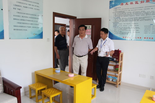 8月19日下午,扬州市关工委主任张厚宝和区关工委一行在街道关工委主任的陪同下,来到蒋王社区参观指导校外辅导站工作。