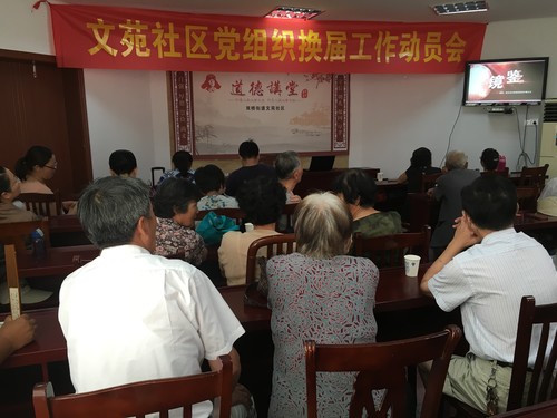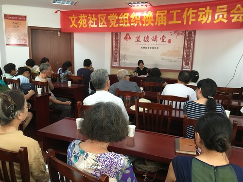 为进一步抓好社区党组织换届选举工作,确保圆满完成换届工作,8月23日上午,双桥街道文苑社区召开党组织换届工作动员会,双桥街道党工委副书记许维参加了此次动员会。会议由文苑社区党委书记任烨主持。