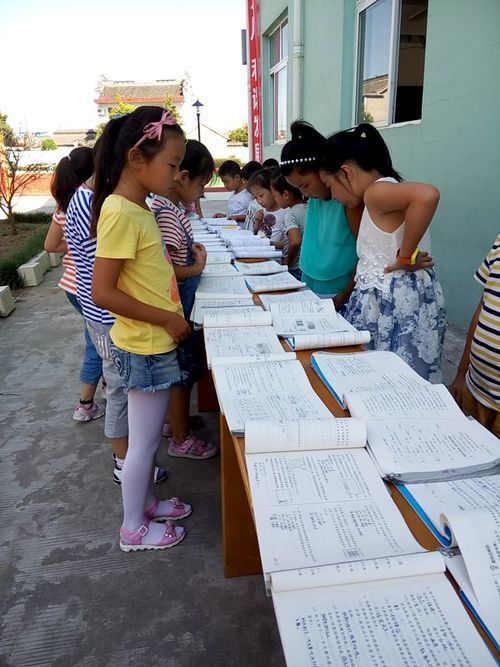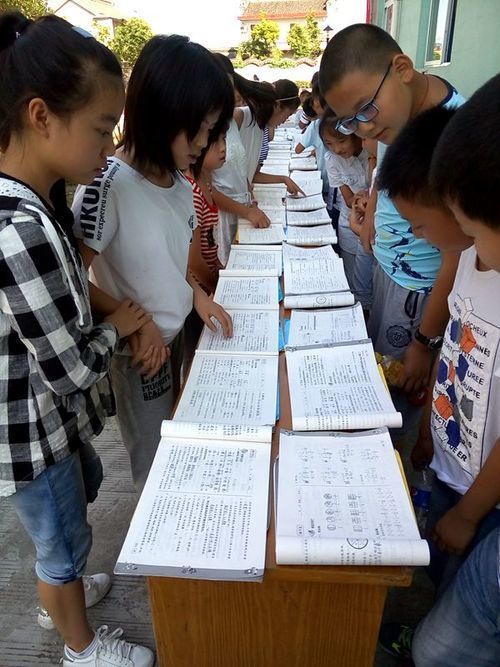 开学第一天,杨庄小学各班就在校教导处的统一部署下,在班级内开展暑假作业展评活动,每班评出五份优秀暑假作业,参加全校的展览活动。9月2日下午第二节课,优秀暑假作业放置在教学楼前,按年级顺序,由各班班主任带领学生参观、学习。最后,教导处评出年级优秀暑假作业,并发放荣誉证书。