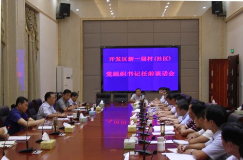 近日,高邮经济开发区村(社区)党组织换届选举工作圆满完成,产生了新一届村(社区)党组织书记。为进一步落实党建责任制,推进各项工作正常进行,14日下午,市委常委、区党工委副书记、管委会主任赵广华组织新任村(社区)党组织书记19人进行了任前谈话。赵广华指出,各村、社区党支部书记是群众的贴心人、农村发展的引路人。基层工作能不能搞好、经济发展快不快,要看支部书记的能力。新班子要有新的精神风貌、新的工作作风。