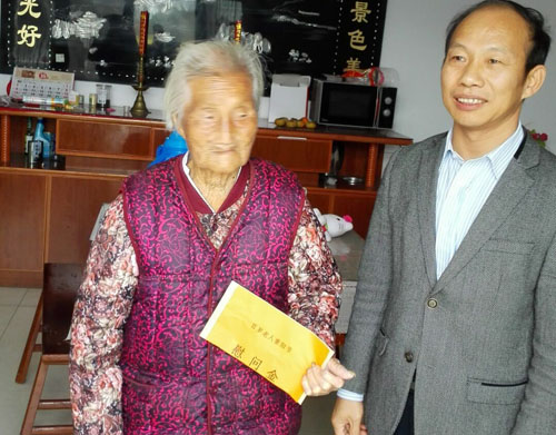 莫道夕阳近黄昏,最美不过霞满天。尊老、敬老是中华民族的传统美德,在九九重阳“老人节”到来之际,区人大副主任曹占田、区民政局副局长鞠福根一行在公道镇副镇长江春萍和民政科工作人员的陪同下带着慰问品、慰问金,走访慰问了公道镇敬老院五保老人、城镇“三无”和百岁老人。每到一处,曹主任都关切地询问老人们的身体状况和家庭生活情况,并祝愿老人们节日快乐,健康长寿。
