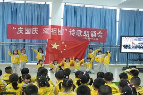 “小草的妈妈是大地,星星的妈妈是天空。浪花的妈妈是大海,祖国她是我们的妈妈……”孩子们那稚嫩的童声在我们的耳边响起。这是公道幼儿园举行的“庆国庆,颂祖国”主题诗歌朗诵会现场。