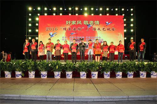 10月9日晚,仪征市在扬子公园盛成广场举行《好家风 敬老情》——“情系桑榆”广场文艺晚会,为获得2016年“孝老文明好儿女”荣誉称号的13名个人和1个集体颁奖。
