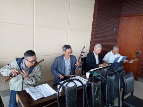 王忠东校长首先代表学校校长室、党支部对老同志致以节日的问候,对他们所付出的努力和贡献表示衷心的感谢!然后回顾了学校上一学年所取得的主要成绩,老同志们不时点头称赞。童金吾、汪城、蒋文生等三位老同志分别即兴赋诗,抒发对重阳聚会的感慨,对晚年生活的祝愿。接着大家用热烈的掌声表达对以赵玉生会长、童金吾副会长为首的上届退协领导多年来辛勤劳动和无私奉献的感激和敬意,朱廷华会长代表新一届退协领导作了表态发言,新老会长的热情拥抱完成了新老退协领导的顺利交接和邵中精神的美好传承。随着孙世和、朱廷华、蒋凤龙、杨宝华等四位老师器乐合奏声起,老同志们的才艺展示开始了:笛声清脆、二胡悠扬、三弦入扣、电子琴悦耳,有板有眼和谐动听。王运鸿老师的《卓玛》《草原之夜》显示了他深厚的演唱功底,诠释了“活到老、学到老”的生活内涵;谢国英老师的《春天的故事》《疼爱妈妈》声情并茂,一招一式很有董文华当年的风韵。大家一下子就被他们高超的演奏,深情的表演所感染,纷纷打着节拍应和,会场里不时爆发出热烈的掌声与年轻的欢呼!周惟宏、刘德平二位老师的书法很是了得,行云流水一气呵成,引得众人啧啧称赏。最后,伴着《生日快乐》的音乐,全场一起为二位80岁、五位70岁的寿星唱起“祝你生日快乐、祝你生日快乐!”……这哪里是老年的聚会?这分明是青春的海洋!