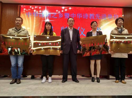 10月21日上午,双桥街道文苑社区喜获“中华诗教先进单位”荣誉称号,江苏省诗词协会会长凌启鸿授牌。