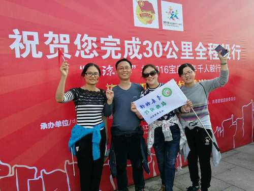 出征仪式临近末尾时,唐学成书记一声令下,三小队队长秦桂来举着“宝应县人民医院”毅行代表队大旗带领大家阔步向前。该院毅行十个小队男女各约一半,年龄跨度从“60后”到“90后”,在途中以小队为单位,各小队长牵头,互相帮助,相互协作。有人脚步慢了,腿疼了,甚至不想继续下去,但是队友都会为他打气,鼓励他向终点前进。