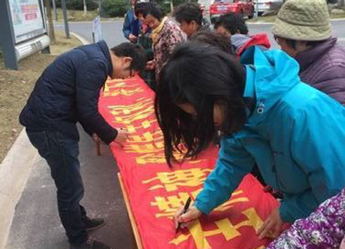 虽然时下正是寒冬时节,但广大选民强烈的民主意识和高涨的参与意识似一股春潮涌动,当看到社区工作人员悬挂“发扬当家做主精神,珍惜民主权利,投下神圣而庄严的一票”宣传条幅时,选民们不约而同的在横幅上签上了自己的名字,使浓厚的民主氛围流动于每位居民心间。