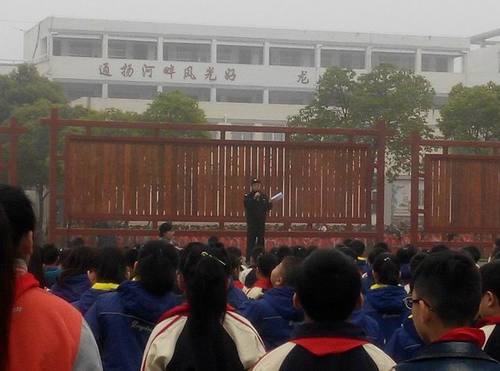 为进一步强化学校师生的法制、安全意识,维护自身及家庭的人身和财产安全,日前,龙川小学邀请了新区派出所、学校法制副校长陈元斌警官给全体师生做了国旗下讲话。