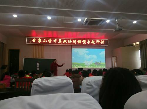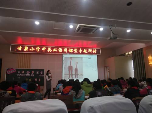 11月17日下午,甘泉小学举办了 “中英双语同课型比较活动”。本次教研活动是基于省级课题《农村小学英语“类母语“教学范式的实践研究》开展的研讨活动。