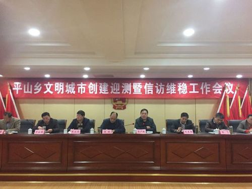11月16日下午,平山乡召开了文明城市创建迎测暨信访维稳工作会议。乡党委副书记、乡长马广跃同志主持会议,乡领导班子成员、机关和村居全体工作人员参加了会议。 本次会议共有四项议程:1、由乡党委委员、副乡长万永明同志传达了景区11月15日信访维稳工作会议精神,部署了下一步工作。2、乡党委副书记刘正兵同志传达了11月15日景区文明城市建设长效管理迎测调研会精神,分析了当前我乡在该项工作中存在的不足与形势,对下一步迎测工作提出了具体要求。3、乡党委副书记、乡长马广跃同志传达了今天上午全市文明城市创建迎测会议的精神,并对我乡在本次迎测中的思想、难点、责任等提出了明确要求。4、乡党委书记王斌同志作了重要讲话,就文明城市建设提出了:一是认识再提高,思想再统一;二是任务再明确,全力攻坚,确保问题整改到位;三是组织再强化,严格督查,确保测评得高分、争第一。就信访维稳工作提出了:一是认清形势,增强紧迫感和危机感;二是强化措施,提高化解信访矛盾的力度和进度;三是落实责任,确保重点时段重点人员稳控到位。