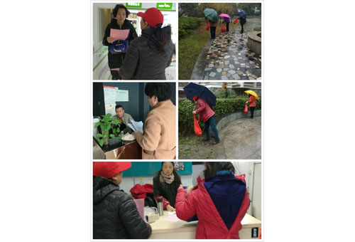 2016年11月22日,为文明城市创建,做文明人,创文明城,园林社区工作人员及志愿者冒雨分头在小区五小店发放宣传资料、捡拾白色垃圾,为小区的进一步健康、卫生、美丽做奉献。