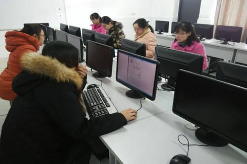 首场比赛于下午1:30准时进行。全体英语教师如约来到电脑教室,以抽签方式领取考题,在2小时内完成指定篇目的教学设计撰写,要求不借助任何教参、媒体,从教材分析、教学目标、教学重难点、教学准备、教学过程、板书和作业设计等方面对文本进行解读、设计,并能体现当前先进的教学理念“单元整体教学”。
