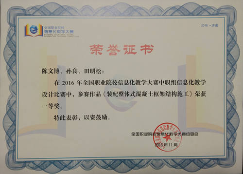本次比赛,重点考察的是教师在信息化教学设计,课堂教学,教学目标达成等方面的能力。教师应根据教学内容和教学对象的特点,合理选用信息技术、数字资源和信息化教学设施,创设学习的情境,优化教与学的过程。所选的教学内容应相对独立、完整,可以是一节完整的课堂教学内容,也可以是某个知识点或者技能点的教学(训练)内容。在比赛现场,陈文博老师从容应对,从设计理念、教学流程、信息技术应用和教学效果等四个方面对作品进行了精彩详细的陈述,获得了评委的一致好评。其参赛作品《装配整体式框架结构施工》荣获中职组信息化课堂教学设计比赛一等奖。