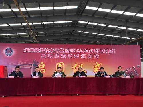 为贯彻落实国家及省、市安全生产会议精神,开发区管委会联合市消防支队于2016年12月8日下午在施桥镇境内的中集集装箱扬州基地举办扬州经济技术开发区2016年冬季消防演练暨撬装式微型消防站启动仪式活动。