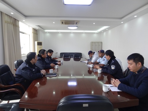 2016年12月3日上午,斐济共和国两位警官在分局党委副书记、政委程志扬的陪同下,到文汇派出所开展为期一天半的学习交流活动,文汇派出所召开座谈会欢迎两位斐济警官,会上文汇派出所负责同志向两位警官介绍了派出所基本情况,辖区警情以及在文汇派出所的学习安排。两位警官表示很珍惜此次学习交流活动,尽快融入到文汇派出所这个大家庭,将在文汇派出所学习到的经验向本国警察推广。市局政治部、分局政治处、国保大队相关负责同志陪同参加。