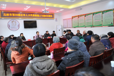 近日,高邮市第33选区市人大代表候选人与选民见面会在南海社区举行,市人大代表候选人徐永宝、俞晓惠、朱友俊分别向选民作自我介绍,热情回答选民提出的当选后如何履行人大代表职责、如何更好地为居民群众排忧解难等问题。镇党委宣传委员潘忠主持见面会,镇领导李深红、韩非、赵帮定参加活动。